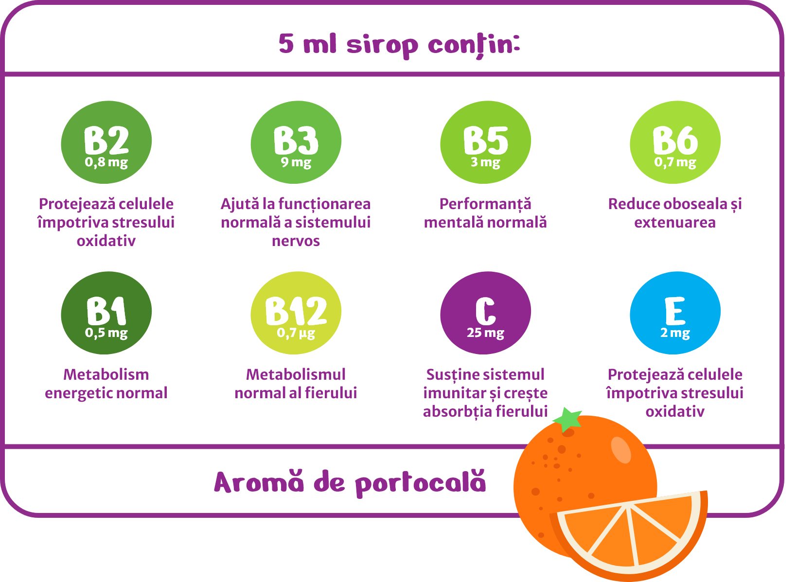 MultiVitamol SIROP 250 ml - Combinație echilibrată de 8 vitamine care susține sănătatea și dezvoltarea zilnică a copiilor cu vârsta cuprinsă între 1 și 3 ani.