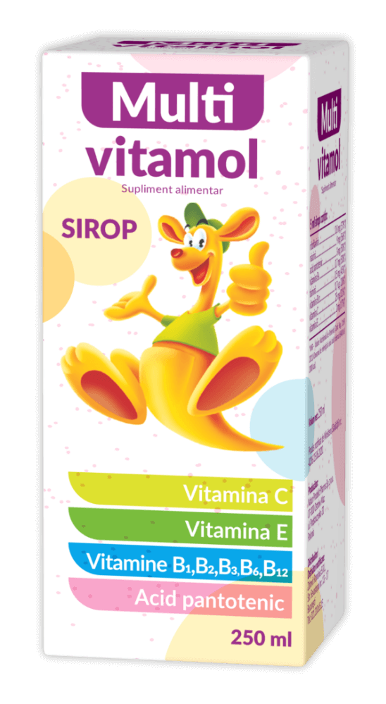 MultiVitamol SIROP 250 ml - Combinație echilibrată de 8 vitamine care susține sănătatea și dezvoltarea zilnică a copiilor cu vârsta cuprinsă între 1 și 3 ani.